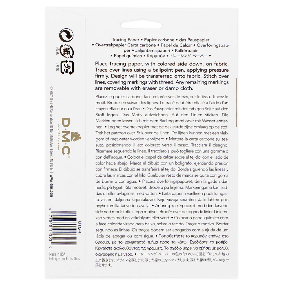 The Embroidery Transfer Paper used to trace any design onto fabric, then simply stitch over the traced lines. Markings rub off with soft pencil eraser or damp cloth.