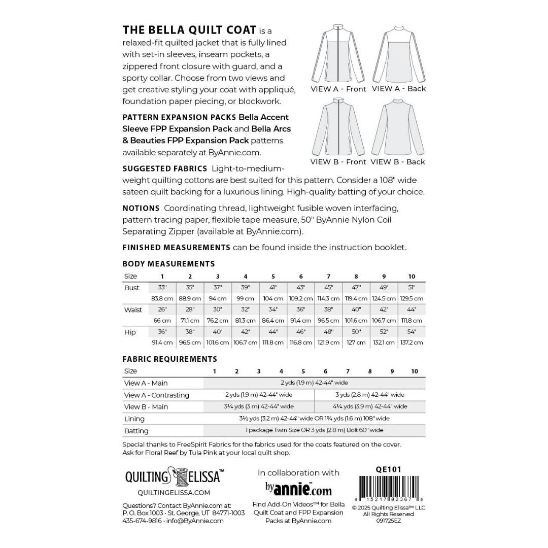 The Bella Accent Sleeve FPP Expansion Pack and Bella Arcs & Beauties FPP Expansion Pack patterns are available separately. Review the design elements in each to decide how you will style your coat.