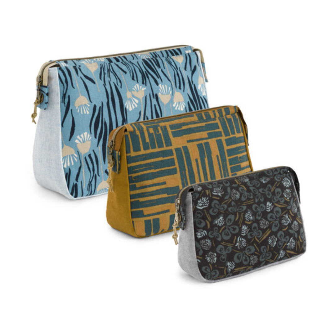 The sample bags are her Haralson Belt Bag pattern and the Plover Pouch (different colourways we don't have, but give you an idea of scale!)